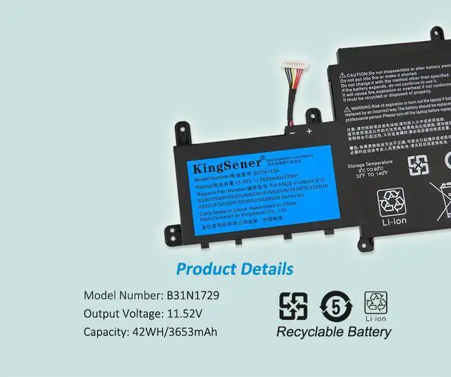 Kingsener B31N1729 Laptop Battery for VivoBook S15 S530 S530F S530FA S530FN S530UA S530UF S530UN X530FN X530FN-1A S5300F S5300U S5300UN Notebook 11.52V 3653mAh 42Wh