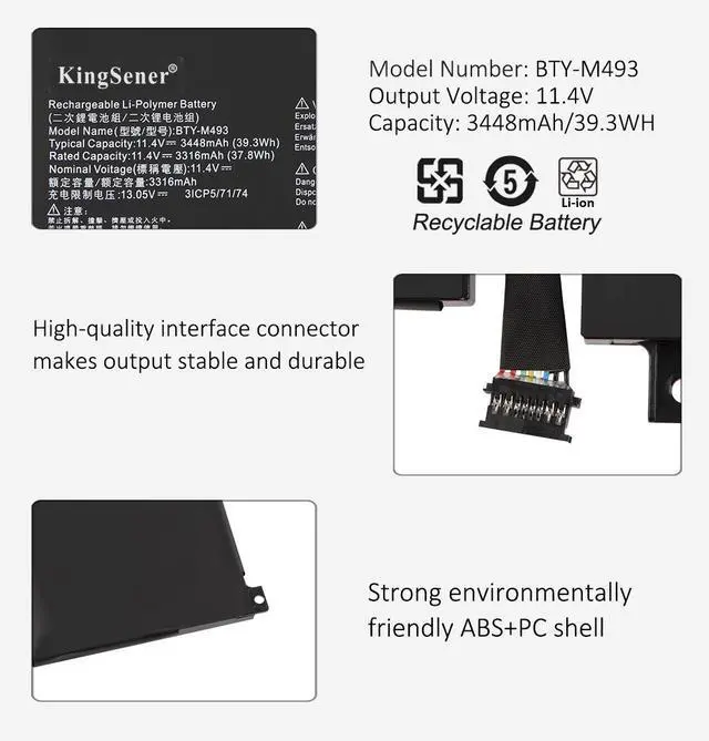 KingSener BTY-M493 Laptop Battery for MSI Prestige 14 i7-10710U MS-14C1 MS-14D1 A10RAS A10M A10SC A10SC-009 B10MW B10MW-017US Summit E14 A11SCS Series