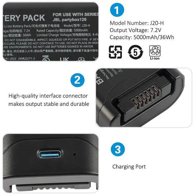 KingSener J20-H Replacement Bluetooth Speaker Battery For JBL PartyBox Club 120