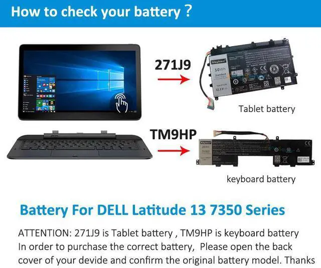 • For DELL Latitude 13 7350 Keyboard Dock Base Battery