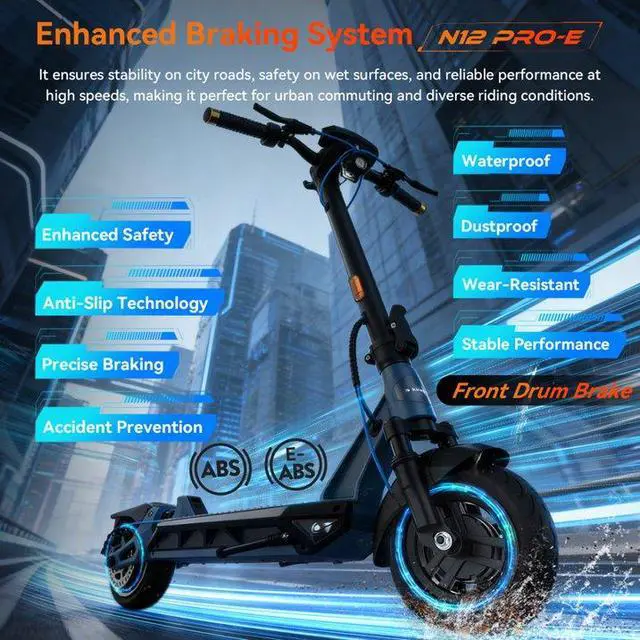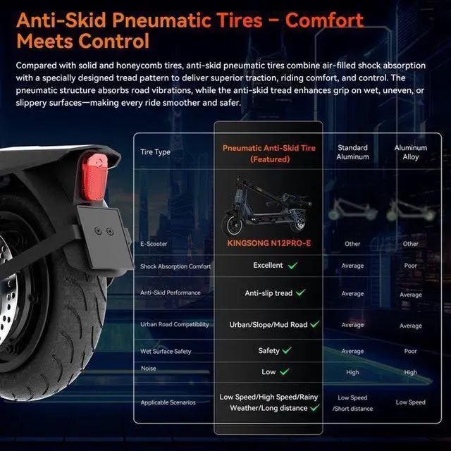 KINGSONG N12 Pro Electric Scooter for Adults: 50-Mile Range, Dual Spring Suspension & Triple Brakes (E-ABS+Disc+Drum). 10" Pneumatic Tires, Foldable Design for Comfortable Urban Commuting