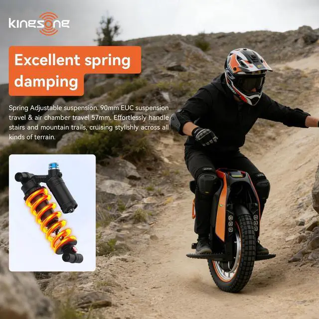 Adjustable Spring Suspension: Equipped with a DNM AOY 36RC suspension featuring 90mm travel plus 57mm air chamber travel. Spring-adjustable design absorbs impacts from stairs, curbs, and uneven trails for a comfortable, controlled ride.