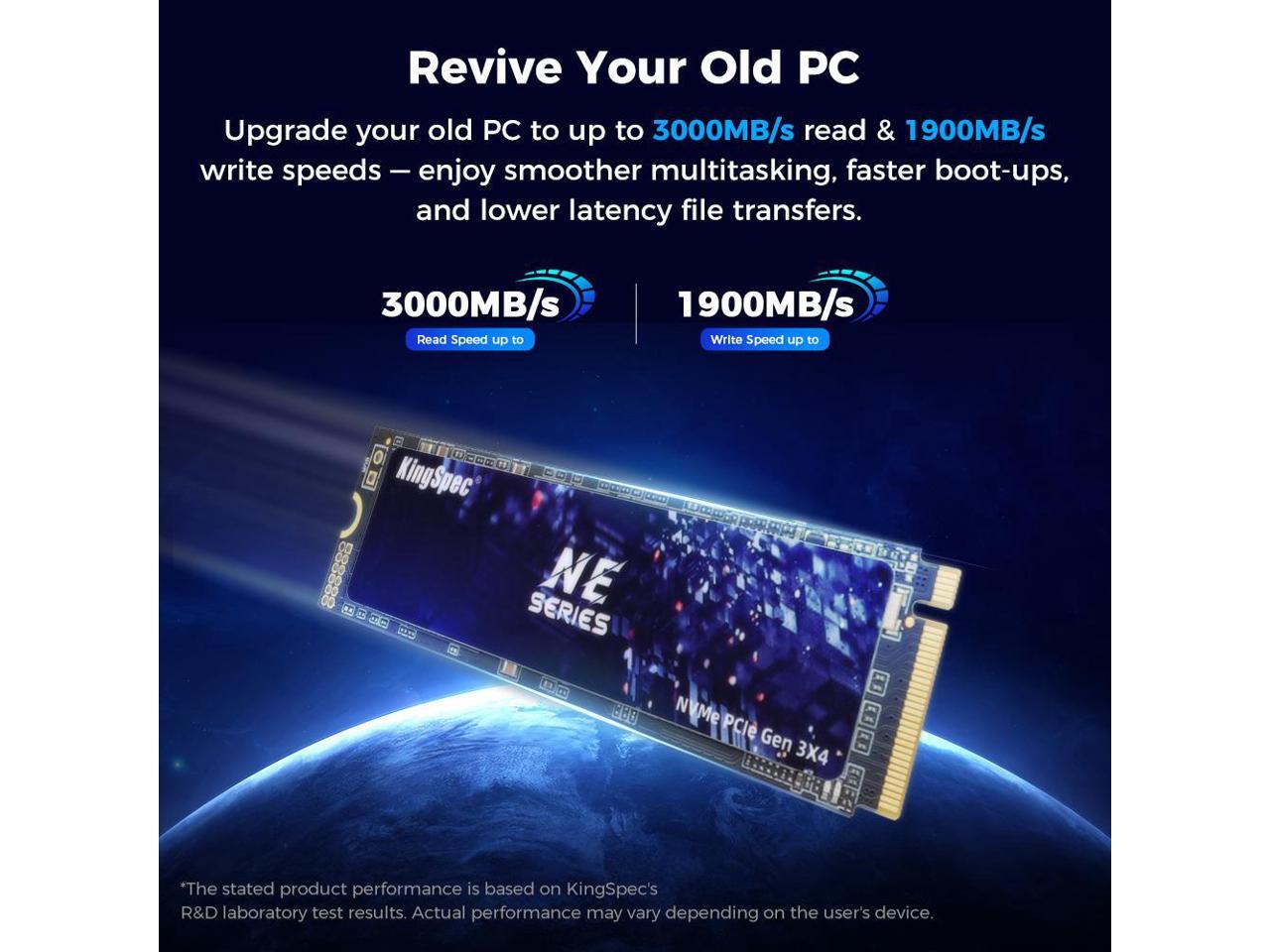 - KingSpec's advanced heat spreader design on the NVMe Solid State Drive enable superior heat dissipation.KingSpec M.2 NVMe PCIe SSD speeds of up to 3000MB/s sequential read and up to 1900MB/s sequential write.