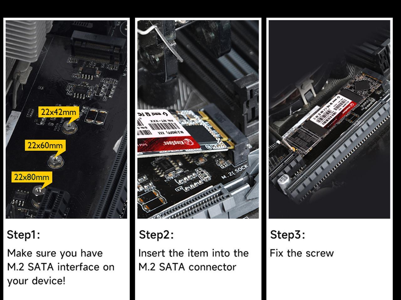 M.2 SATA 2280 SSD comes with cooling sticker, which can reduce the energy consumption of SSD under working conditions, and assist in cooling.