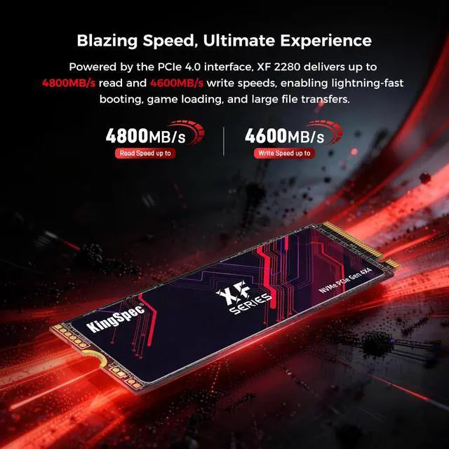 Powered by the PCIe 4.0 interface, this SSD delivers up to 4800MB/s read and 4600MB/s write speeds, enabling lightning-fast boot-ups, game loading, and large file transfers.