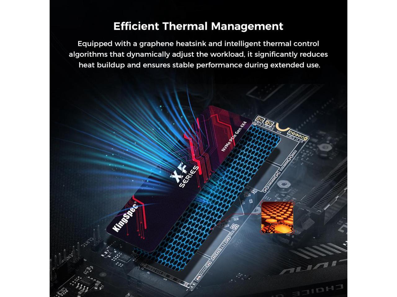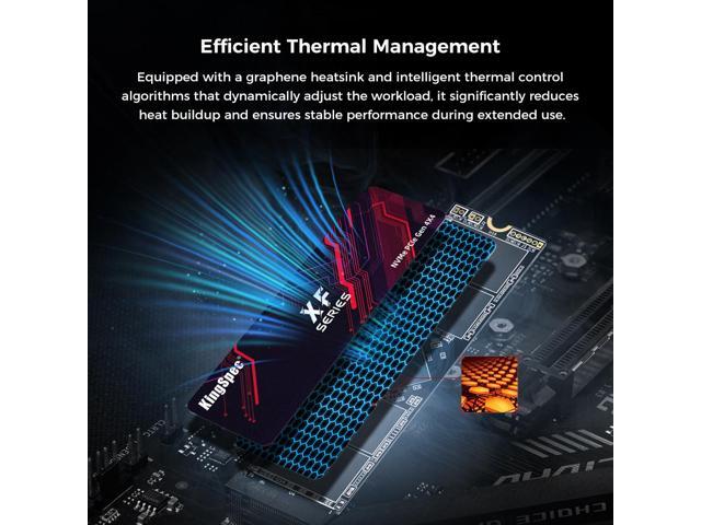 - · Gaming SSD uses KingSpec's own high-end controller to deliver effective thermal control of the NAND chip; With the added heatsink, play confidently on PS5 gaming consoles and PC computers without performance drops from overheating.