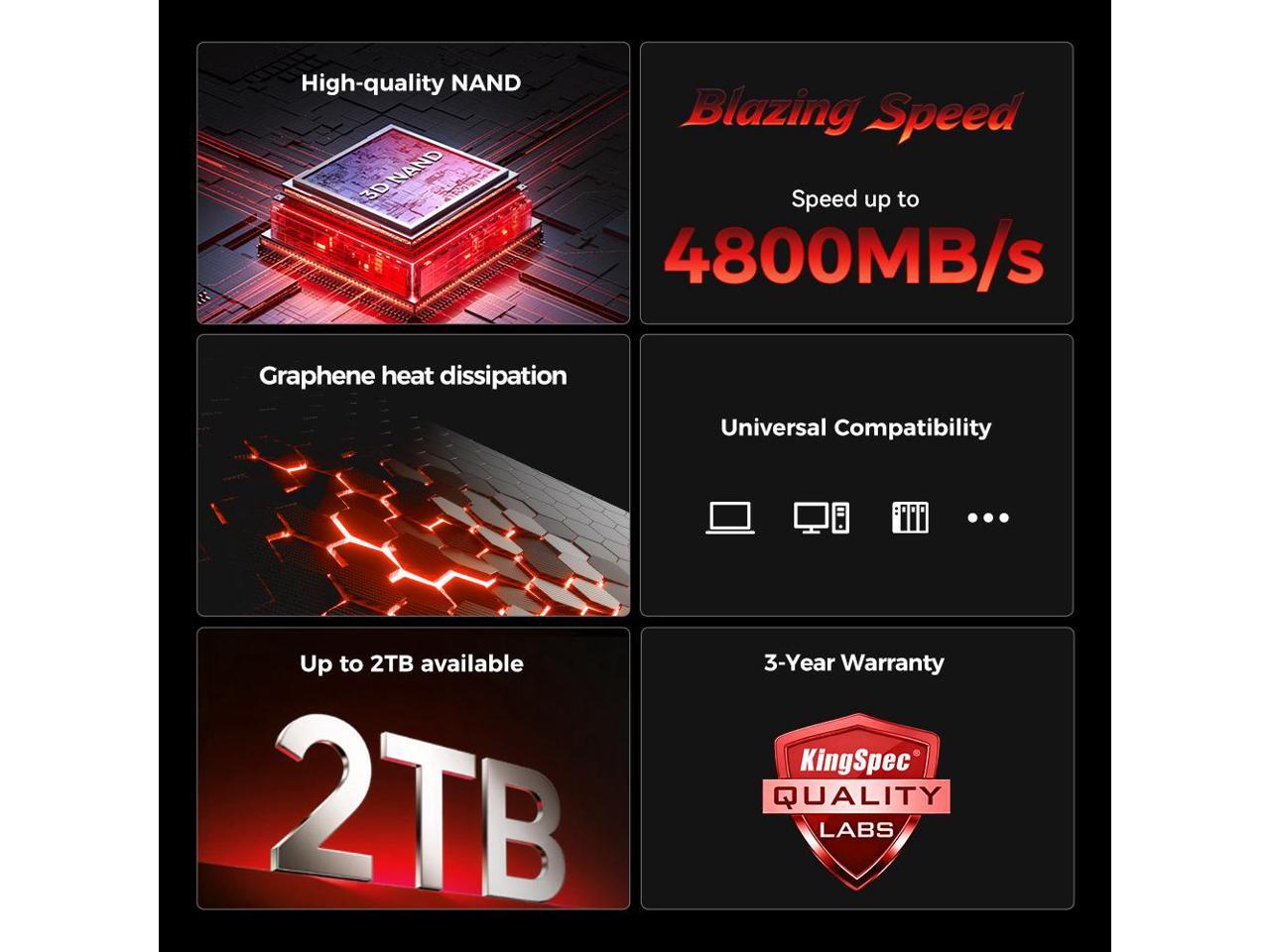 - · Exciting performance, computer storage SSDs redefine speed - up to 4800 MB/s sequential read catalyzes the full power of PCIe Gen4. KingSpec PCIe NVMe SSDs are 10x faster than our SATA SSDs.