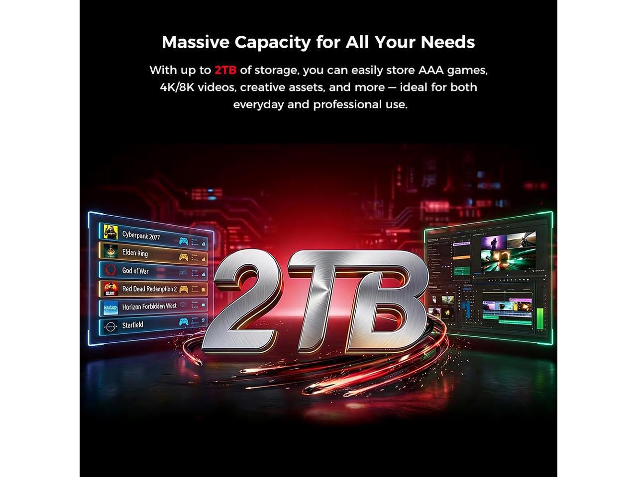 - · PCIe 4.0 SSD adaptive thermal protection keeps your data safe while improving system reliability. NVMe internal SSDs are rated at over 2 million hours mean time between failures, extending longevity and stability while minimizing performance fluctuations over extended periods of use.