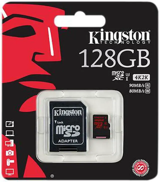 The Kingston microSDHC/SDXC UHS-I U3 memory cards deliver impressive speed that allows you to unleash the full potential of your portable electronics like smart phone, tablet, action camera and quadcopter. With up to 90MB/s read and 80MB/s write speed (for reference only), you can capture cinema-quality Full HD (1080p), Ultra HD (2160p), 4K2K videos and sequential photos in burst mode without stutter or artefacts. These cards are built to be durable to resist the elements, thus your precious memories remain safe and sound during the rigors of life. Multiple capacity options including 32GB, 64GB and 128GB provide plenty of room for longer recording time for HD video and space for thousands of high-resolution photos and hours of video.