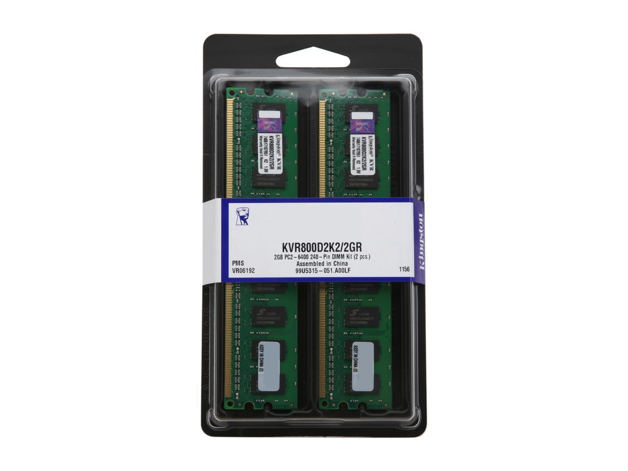 Kingston 2GB (2 x 1GB) 240-Pin DDR2 SDRAM DDR2 800 (PC2 6400) Dual Channel Kit Desktop Memory Model KVR800D2K2/2GR