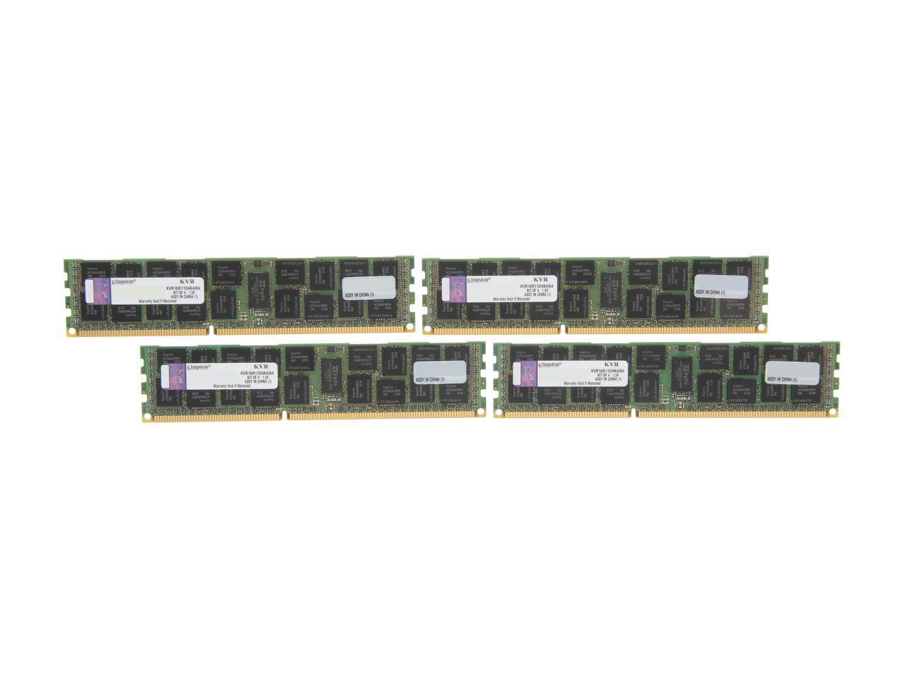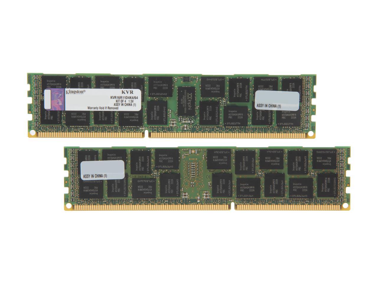 Kingston 64GB (4 x 16GB) ECC Registered DDR3 1600 Server Memory DR x4 Model KVR16R11D4K4/64