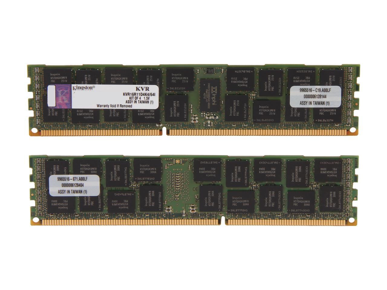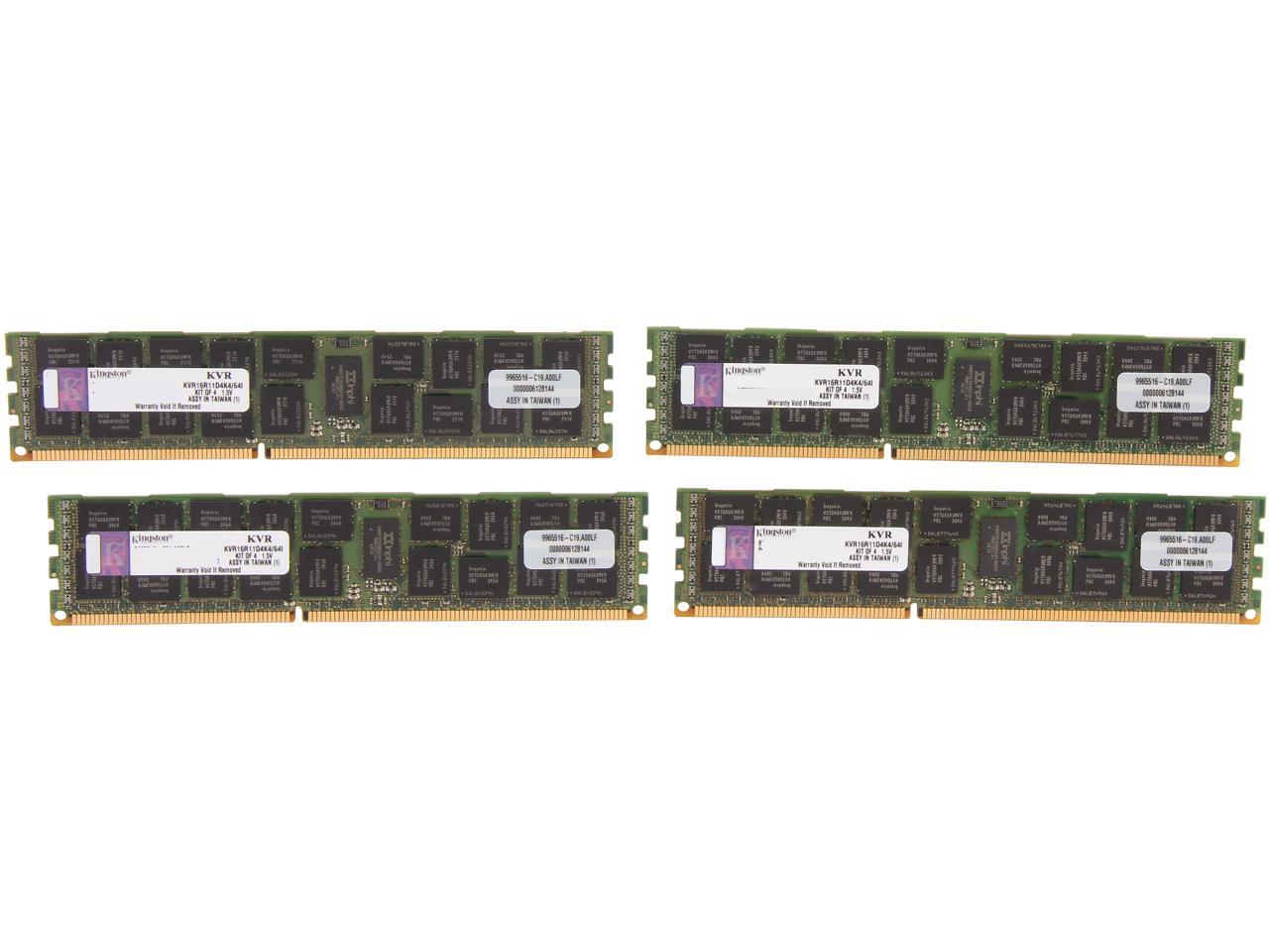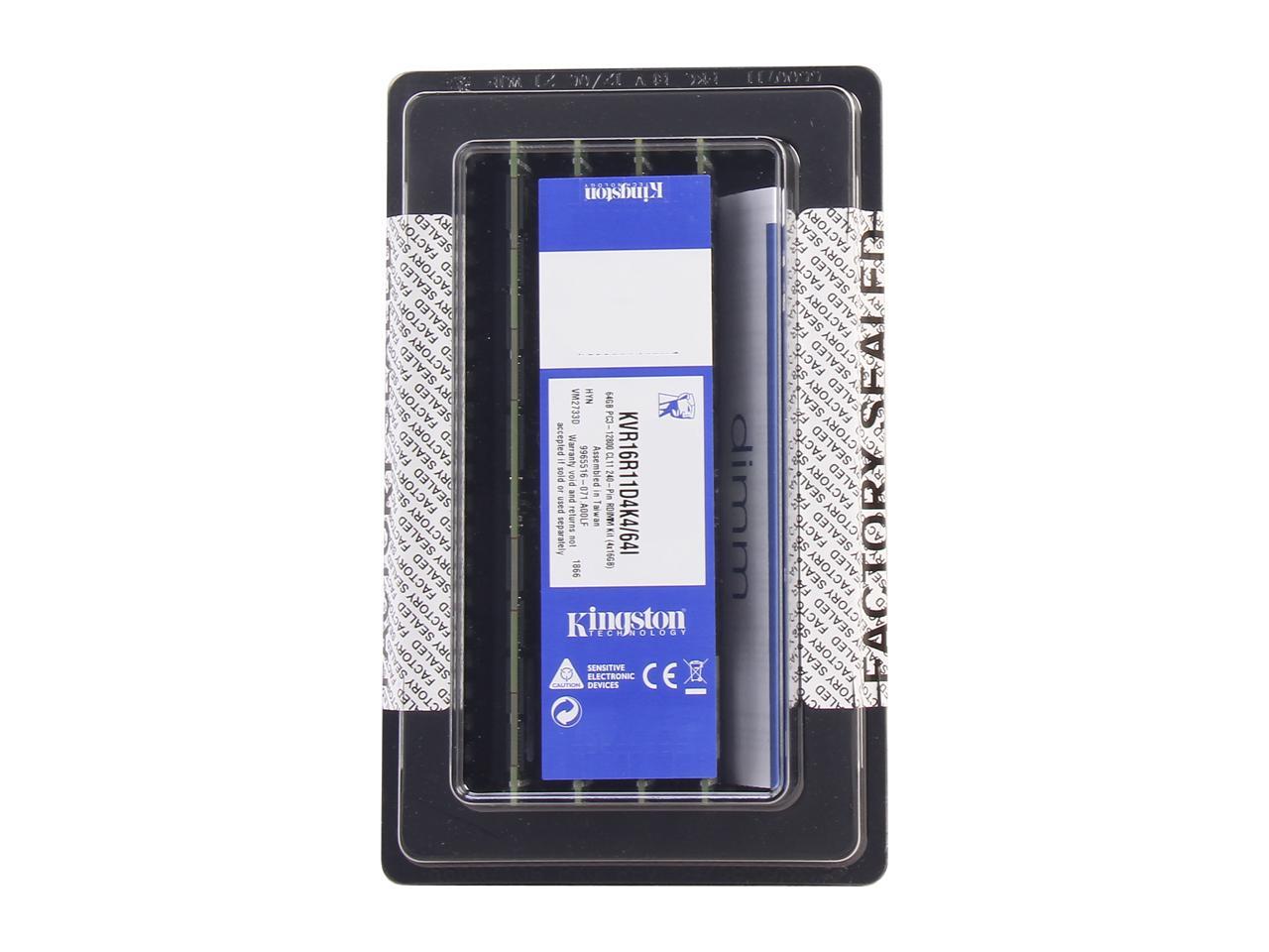 Kingston ValueRAM 64GB (4 x 16GB) ECC Registered DDR3 1600 Server Memory (Intel Validated) Model KVR16R11D4K4/64I