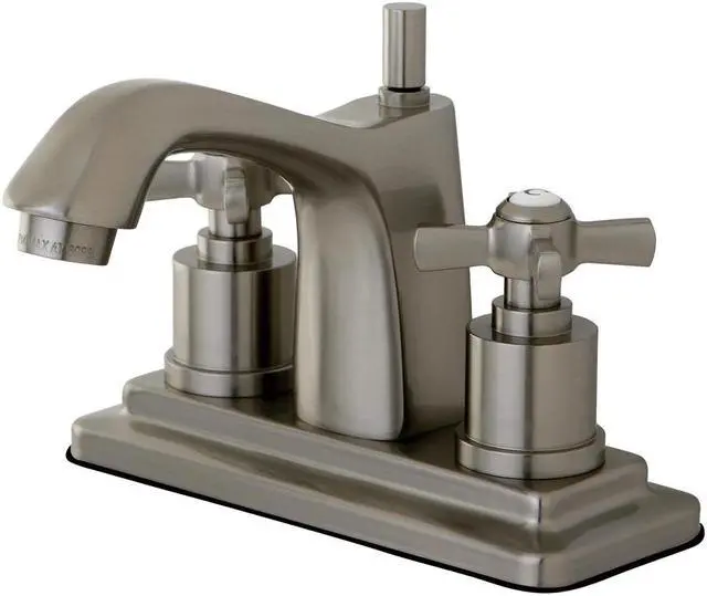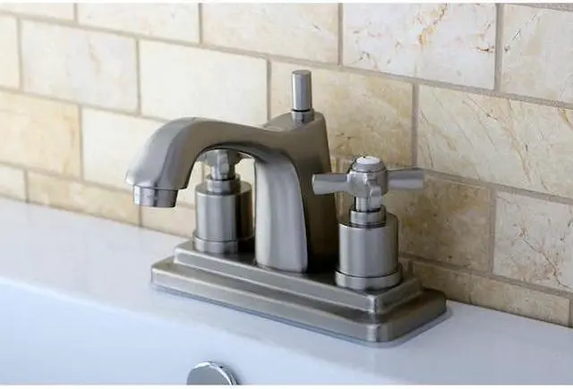 Elegance and function is perfectly blended in this centerset- the traditional lines of the spout- coupled with the multi-stepped base plate makes this a faucet that will fell at home in most traditional decors- Solid Brass construction and ceramic cartridge for long lasting performance.FeaturesMax 2.2GPM/8.3LPM At 60 PSI1/4 Turn Ceramic Disc CartridgeSolid Brass Construction For DurabilityFits 2 Hole Sinks With 4 in. Centers4 in. Spout Reach4-3/8 in. Spout HeightHandle Type - ZXFinish - Satin Nickel