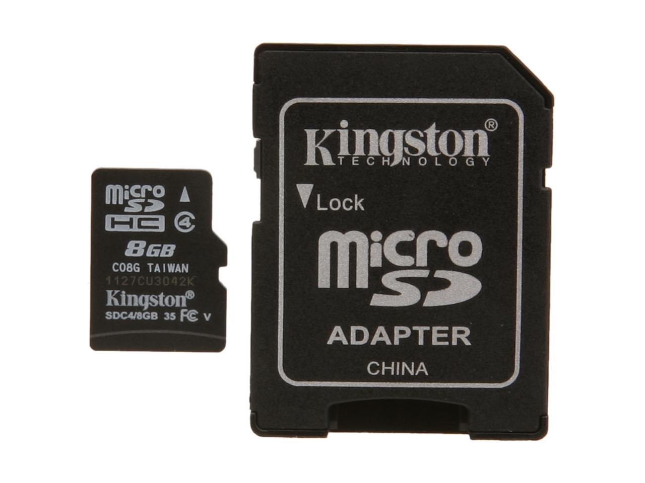 Kingston 8GB microSDHC Flash Card Model SDC4/8GBET