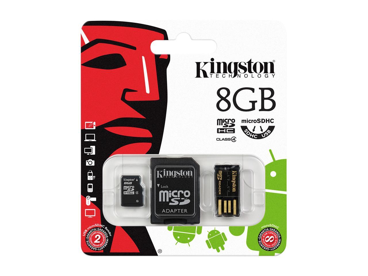 Kingston 8GB microSDHC Flash Card Bundle Kit (with a full-size SD adapter and USB reader) Model MBLY4G2/8GB