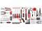 [Complete Varieties] - Comprehensive assortment of professional-grade wrenches, a complete range of 1/4 inch and 3/8 inch metric-sized sockets and precision screwdrivers, hammer, tape measure, pliers etc. The 72-tooth ratchet. Variety of 1/4-inch screwdriver bits: Phillips, slotted, square, star and pozi. Soft-grip handle on screwdrivers, pliers, srtipper and hammer provides excellent comfort and control.