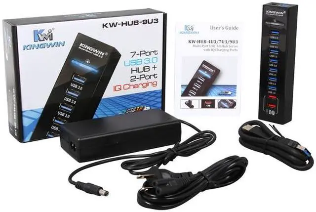 | Features | 7 SuperSpeed USB 3.0 Port 2 SuperSpeed USB 3.0 IQ Charging Port IQ Charging Technology Intelligently Identifies Your Device and Adjust to Maximum Charging Speed Universal Charging Compatibility Charge Any Combination of Phones, Tablets or Other USB-Charged Devices Blue LED Light BC 1.2 Compliant |