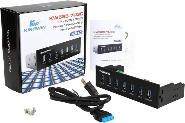 | Features | 7 port usb 3.0 hub with 1 X 2.1A fast charging port Backward compatible with USB 2.0/USB 1.1/USB 1.0 Connect up to 7 USB 3.0 devices Fit any 5.25” computer case front bay 7 front accessible USB Type-A ports with 7th port having fast charging support SuperSpeed USB 3.0 supports up to 5 Gbps of bandwidth Support variety of USB devices including scanners, printers, digital cameras, camcorders, speakers, mice, keyboards, external drives, MP3 players and more |