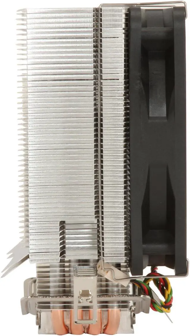 The heatsink is cooled by the 120mm fan mounted on the side of the array, which directs nearly 100 CFM of cooling air at a maximum 2300 rpm. Its support for PWM lets the BIOS control the speed of the fan based on the CPU’s thermal needs, lowering the fan's speed and noise during off-peak cycles. Perfect price, perfect performance!
