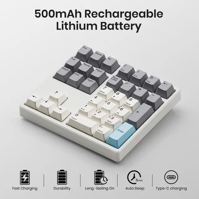 - [Multi-layer Silencing Structure]Designed with your comfort in mind, all of Kisnts keyboards feature a multi-layered cushion to make typing easier on your fingers. The Poron bottom layer, combined with the sandwich foam and IXPE switch pad,it makes every keystroke feel consistent and the sound is much more pleasant. If you are a mechanical keyboard lover, youll love the sound this keypad makes.