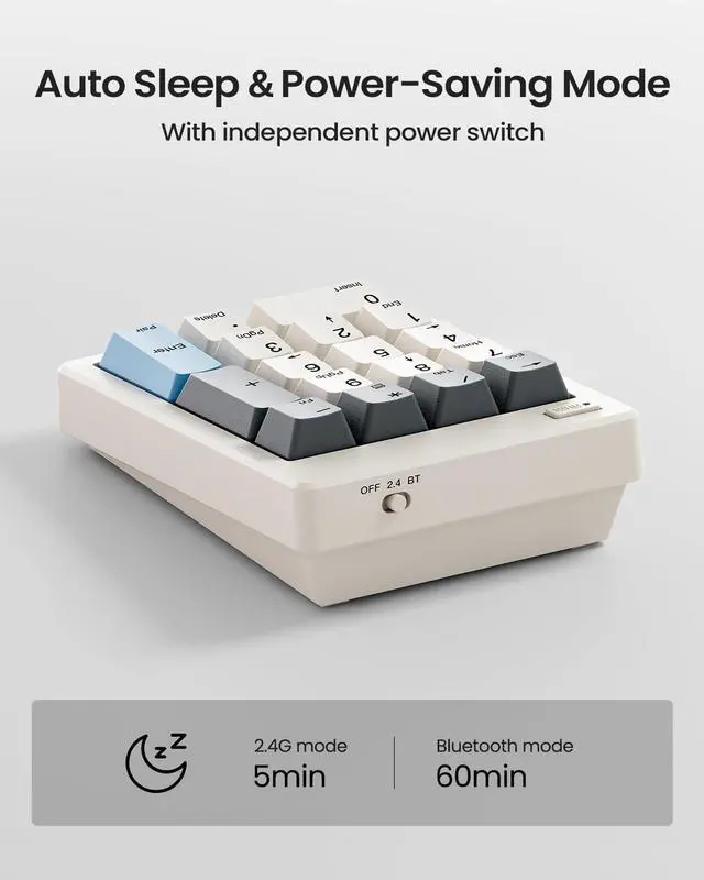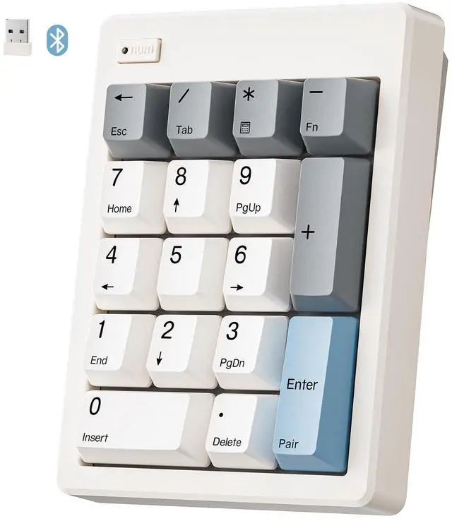 Our bluetooth keypad go with a Dye-Sub process and from extra thick PBT makes the keycap characters and colors bright, not easy to wear, not fade.