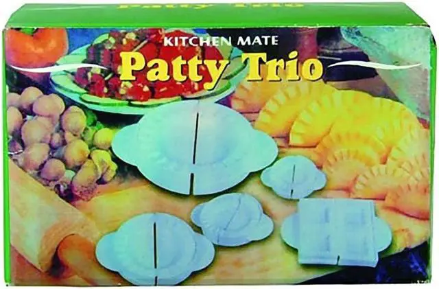 Introducing (Kitchenmate's) Patty Trio your perfect solution for crafting tasty dumplings pastries and ravioli effortlessly. Great for smaller dough pockets sweet or salty treats. This set of 3 mini dough presses ensures fresh healthy and super-fast cooking. Crafted from durable plastic for long-lasting use. Includes 1 x small 1 x medium and 1 x large mini dough press in white. Enjoy easy delicious creations every time. Plastic Set of 3-Piece