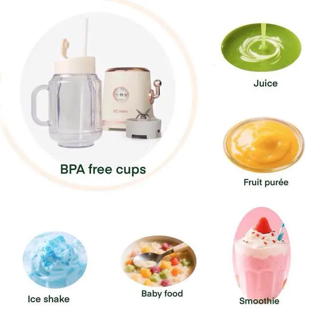 Quick & Easy Cleanup: This Retro Smoothie Blender Maker's Cleaning is easy, just rinse the cups or run the blender with water and dish soap to keep the small blender ready for your next use.