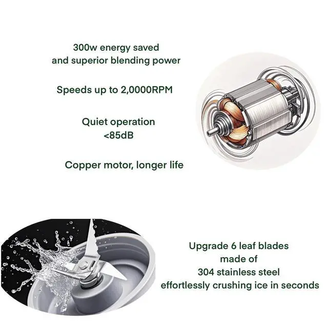 Energy Saved and Superior Blending Power: This Retro Smoothie Blender Maker with a energy saved ,300w daily used enough motor which speeds up to 20,000 RPM , across adjustable 2-speed controls and 6 stainless steel blades for making fruit smoothies, shakes ,Soup and your favorite icy drinks in seconds.
