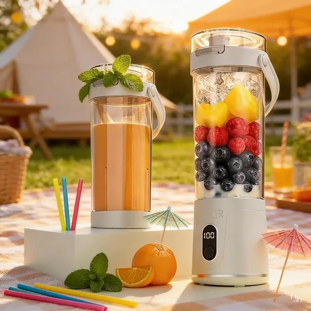 The Portable USB Electric Juicer is the ultimate on-the-go solution for anyone who loves fresh smoothies, shakes, and juices. With its powerful 12-blade system and 50W motor, it crushes ice, frozen fruits, and vegetables to create smooth blends in seconds. Designed for safety, the juicer features a smart protection system, preventing accidental starts and ensuring reliable operation. With a 600ml capacity and USB rechargeable battery, its perfect for a busy lifestylewhether you're at home, in the office, or traveling. Enjoy convenient, healthy beverages anytime with this compact and versatile mini blender.