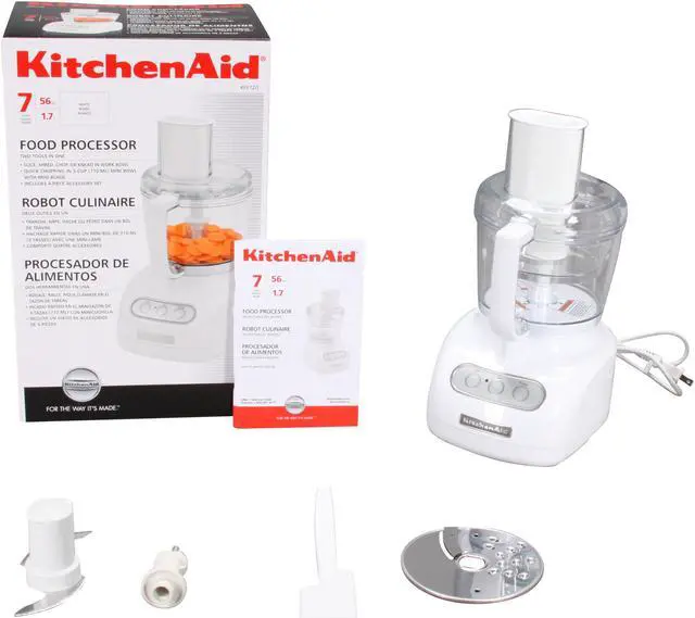 | Features | KitchenAid Model KFP710WH Food Processor is a powerful and durable tool for creative cooking. This model features a 7-cup work bowl Includes 3-cup mini bowl for smaller tasks. Full-size feed tube and pusher Powerful induction motor Premium-quality stainless steel blades Easy-to-Clean design |