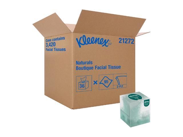 - 36 boxes / case; 95 sheets / box: Each white Kleenex Naturals tissue is 8.3" x 7.8", 2-ply, absorbent, soft and strong