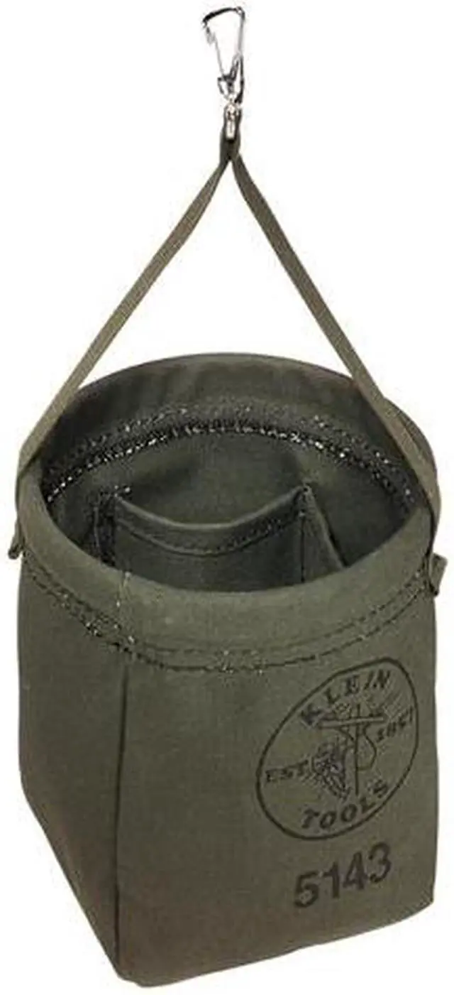 California Proposition 65: This product contains a chemical known to the State of California to cause birth defects or other reproductive harm. The Klein Tools 5143 Tapered Bottom Bag is the perfect solution for keeping your tools organised. It has two internal pockets to keep your tools separated and there is a swivel snap hook on the top of the bag so you can attach it to a belt loop or carabiner. The canvas bucket bag features a snap hook that allows you to attach it to a belt loop or carabiner. This 8" high bag/tote has an overall height of 8 in., making it compact enough for storage in most tool boxes. The two internal pockets provide ample space for storing your hand tools, while the 6 1/2" diameter provides room for larger items such as screwdrivers and pliers. Klein Tools' Bucket Bag will help you get through any project with ease.. This item has been restricted from sale in the following state (s): []