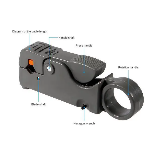 Rotary Cable Stripper: 2 Blade Design; Fully Adjustable & Replaceable Blades; Work with RG58/59/62/6/3V2V/4C/5V