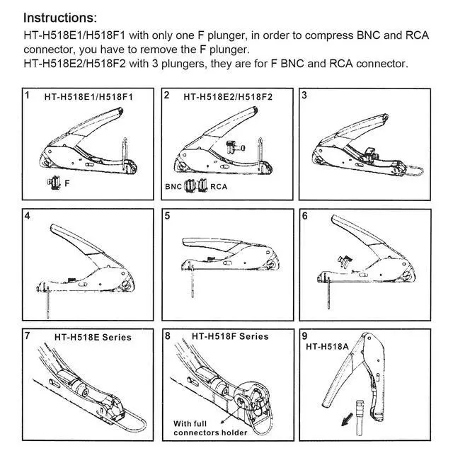 3 in 1 Compression/Crimping Tool: Work with RG-6, RG-59, RG-58, BNC, RCA etc. Help to Accurate in Pressing and Not Easy to Damage F Head. It Guarantees the Quality of Pressing and Displays the Exquisite Pressing Appearance At the Same Time