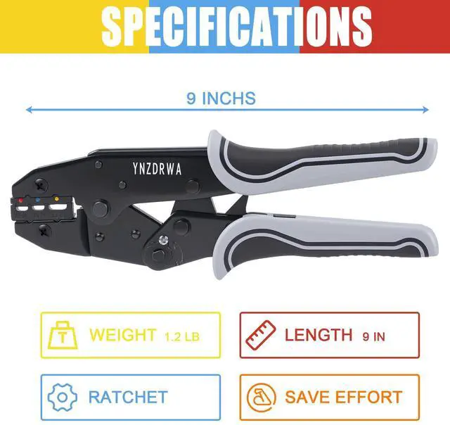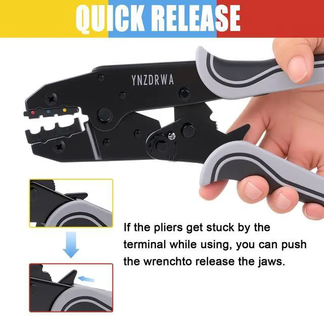 YNZDRWA wire crimper comes with wide crimping range, Ratcheting insulated terminal crimper for 10 to 22 AWG wire.