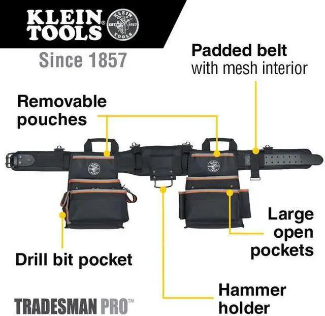 This tool belt features removable pouches that allow you to carry the tools you need. Wide, open pockets help to accomodate tools, hardware, and spare parts. Features a drill bit pocket, loop tape measure and hammer holder, suspender attachment, and rugged leather belt ends. Tool Belt, 31 to 34 in Waist, 26 PKT, Black This product contains a chemical that is regulated under California Proposition 65. Warning: This product contains a chemical known to the State of California to cause cancer. Warning: This product contains a chemical known to the State of California to cause birth defects or other reproductive harm. -