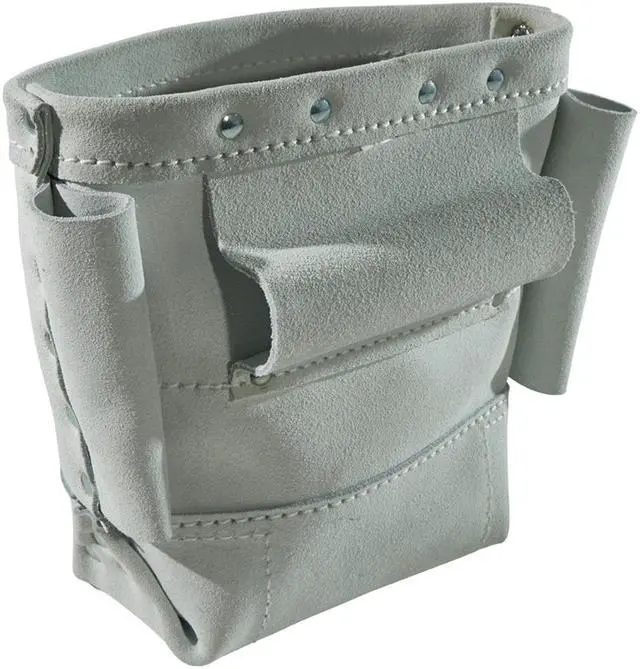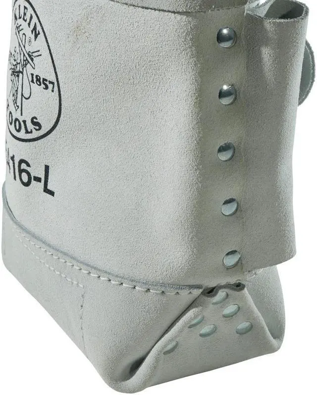 The Klein Tools Bull-Pin and Bolt Bag is a great way to carry all of your bolts and bull pins while on the job. The 10 in. deep bolt bag holds a large amount of steel working bolts while the side loops holster your bull pins when not in use. The durable leather material resists most jobsite hazards. The tunnel belt loop accommodates belts up to 3 in. wide.