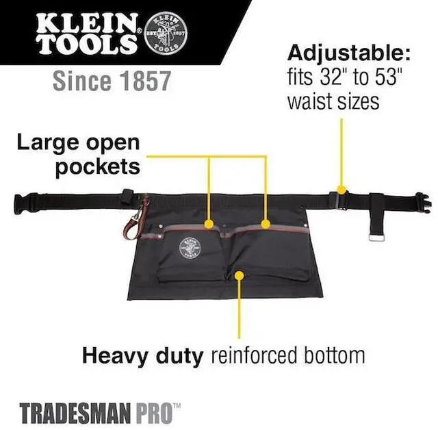 California Proposition 65: This product contains a chemical known to the State of California to cause birth defects or other reproductive harm. Tool Pouch Apron, Heavy Duty, Width 19 In., Depth 1/2 In., Height 10-1/2 In., Waist Size 32 In. to 53 In., Number of Pockets 6, Ballistic Polyester Material, Black, Belt Type Adjustable, Reinforced Bottom, (2) Parts Pockets, (2) Assorted Tool Pockets, (2) Pencil/Marker Pockets, For Use With Assorted Tools and Parts, Includes Tape Thong. This item has been restricted from sale in the following state (s): []