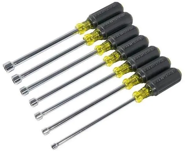 The Klein Tools Magnetic Nut Driver Set features nut drivers with internal flanges to provide a solid, twist-resistant shaft anchor. The nut drivers in this 7-piece set are made with chrome-plated, hollow shafts to help prevent corrosion. The donut-shaped magnetic tips easily hold fasteners in place for convenient use. The drivers are constructed with Cushion-Grip handles to provide greater torque and comfortable use.