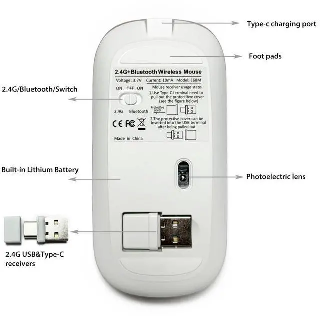 USB2.4G/Type C Nano USB receiver *1(hidden in the slot at the bottom of the mouse)