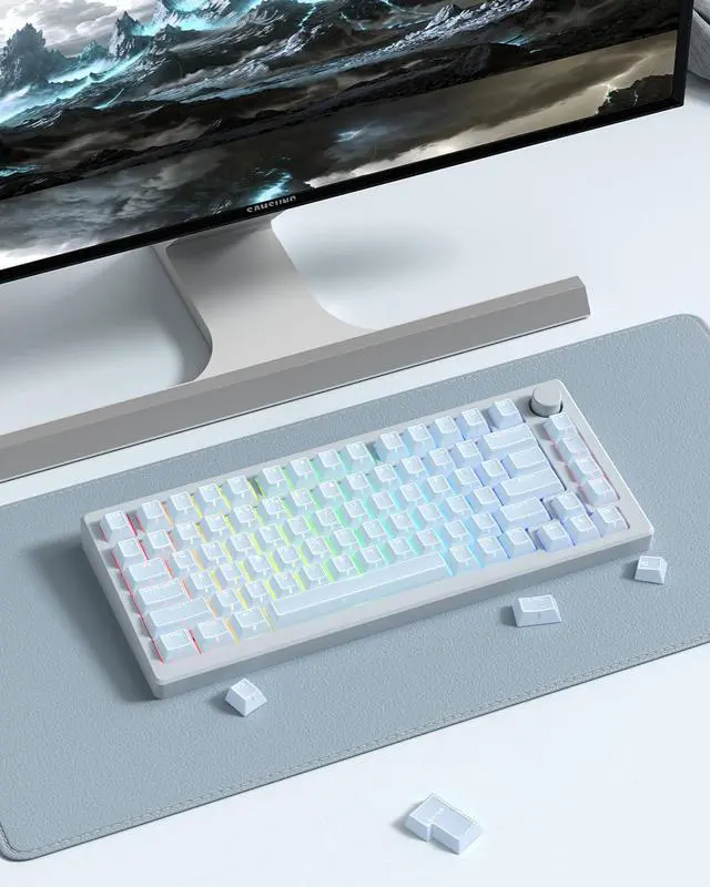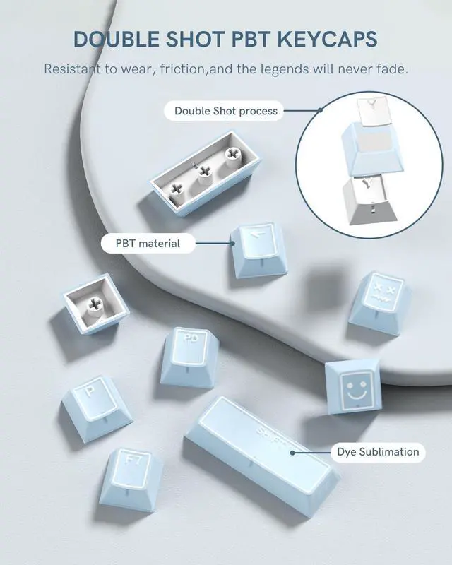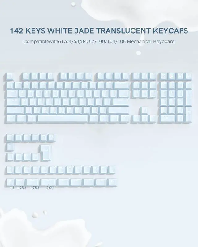 Refresh your keyboard with this 142-key Blue Jade keycap set, designed in Cherry profile for a comfortable and sculpted typing feel. Made with durable double shot PC+ABS, these mx keyscaps feature crisp legends that wont fade and a smooth jade-like finish for an elegant look. The translucent design delivers a shine-through effect, letting RGB lighting glow beautifully across your setup. Perfect for gamers, typists, or creators, these Blue keycaps bring a clean aesthetic while enhancing keystroke sound. With wide compatibility, this jelly keycaps set fits most 60%, 65%, 75%, TKL, and full-size mechanical keyboards. Each clear keycaps kit includes a full 142 keys and a keycap puller for quick and easy installation. Durable, versatile, and stylish, its the ideal upgrade for your mechanical keyboard build.
