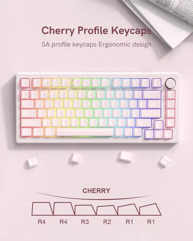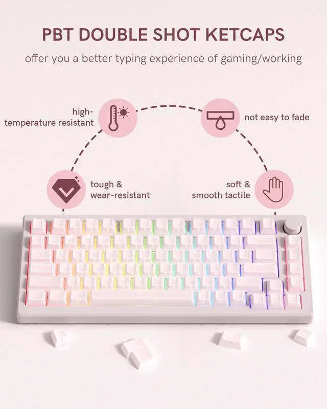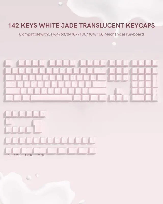 Refresh your keyboard with this 142-key Pink Jade keycap set, designed in Cherry profile for a comfortable and sculpted typing feel. Made with durable double shot PC+ABS, these mx keyscaps feature crisp legends that wont fade and a smooth jade-like finish for an elegant look. The translucent design delivers a shine-through effect, letting RGB lighting glow beautifully across your setup. Perfect for gamers, typists, or creators, these Pink keycaps bring a clean aesthetic while enhancing keystroke sound. With wide compatibility, this jelly keycaps set fits most 60%, 65%, 75%, TKL, and full-size mechanical keyboards. Each clear keycaps kit includes a full 142 keys and a keycap puller for quick and easy installation. Durable, versatile, and stylish, its the ideal upgrade for your mechanical keyboard build.