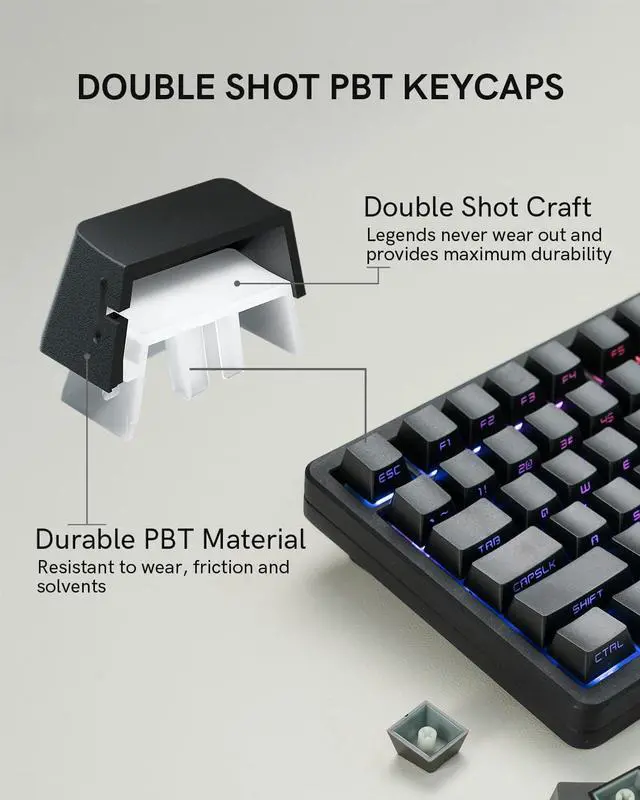 - Made from high-quality PBT keycaps, this keycap set resists wear, oil, and fading. Legends never disappear, and the textured surface ensures a comfortable, long-lasting typing feel.