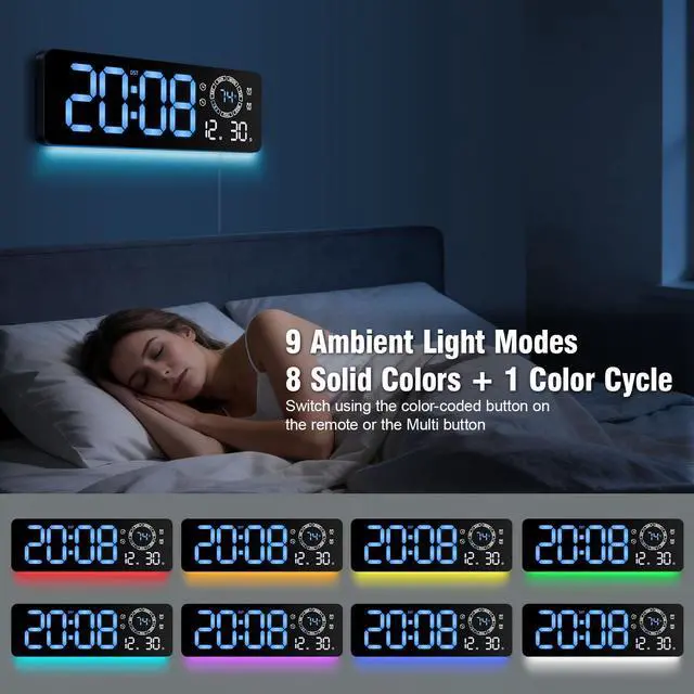 16-inch Jumbo Display Digital Clock with Remote, Auto-Dim & Night Light, Electronic Calendar Wall Clock (Date, Week, Temp) for Elderly, Bedroom, Living Room