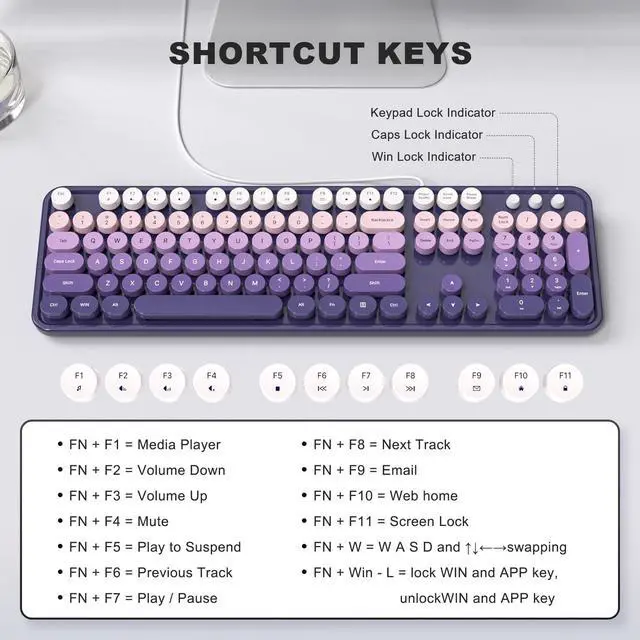 Fashion Multi-color Wired Computer Colorful Keyboard - Enjoy Wired Freedom, give you a cute typewriter style.