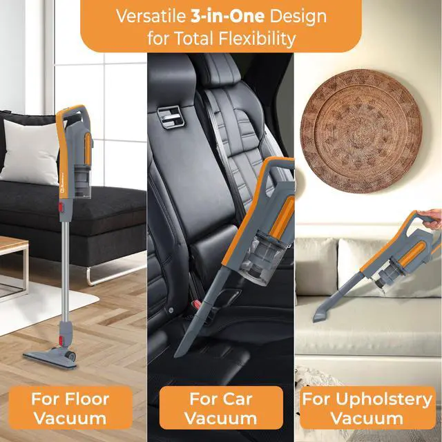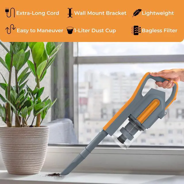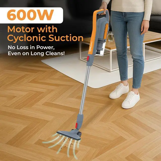 The Koblenz(R) SVK-160 Atlas Corded Stick Vac 3-in-1 Cyclonic Vacuum Cleaner features a 3-in-1 design. It can be used as a powerful hand vacuum with cyclonic technology or as an easy-to-use stick vac. It is powered by a 600-watt motor and is AC operated to provide a continuous level of suction. The 4.23-cup (1-L) dust tank is ideal for quick cleaning and the long power cord allows you to clean a broad area from a single outlet. The less-than 5-lb. weight makes easy to handle. It comes with a 2-year warranty.