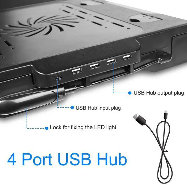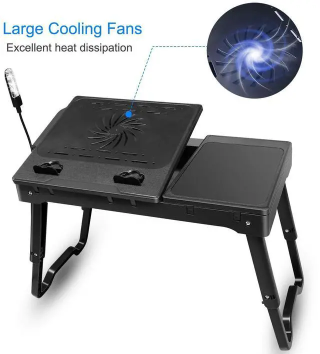 Upgraded Versatile Laptop Table: Comes with a large mouse pad, a inbuilt perforated cooling fan, a LED lamp with adjustable light wand, 4 x USB 2.0 ports and some inbuilt storage compartments with 4 cm depth. It can effectively protect your laptop and bring you much convenient