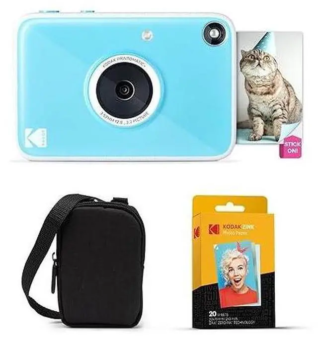 The Printomatic+ is the ultimate Kodak instant camera thats packed with everything you need and more! Combining convenience, creativity, and fun, this portable, easy-to-use instant print camera lets you capture every moment on the spotwhether youre at a party, on vacation, or just enjoying everyday adventures. The 10MP sensor of the instant picture camera ensures sharp, vibrant photos, while the lightning-fast print time means youll never miss a moment. Featuring a built-in battery, the instant digital camera its always ready for your next adventure, and the interactive LED status indicator keeps you informed when your portable camera is charged, processing, printing, or cooling down. With the camera instant print, simply point, shoot, and print, and watch your memories come to life on durable, smudge-proof, and tear-resistant sticky-backed photo paperno ink or toner needed. From special events to spontaneous fun, the Kodak instant film camera transforms fleeting moments into long-lasting memories, making it the perfect companion for capturing lifes best moments in vibrant color!