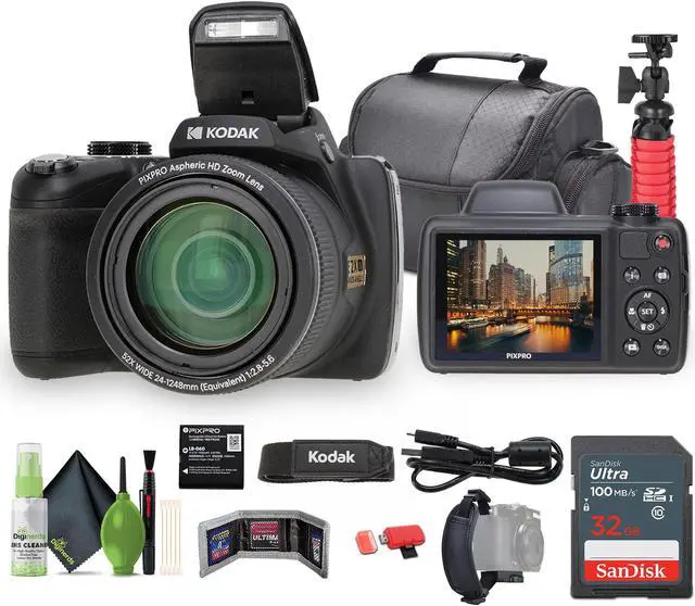 The Kodak PIXPRO Astro Zoom AZ528-BK is a versatile digital camera designed to meet the needs of travelers, hobbyists, and photographers who value power and simplicity in a compact design. Featuring a 16MP 1/ 2.3" BSI CMOS sensor, it delivers high-resolution photos and Full HD 1080p videos with exceptional clarity and minimal noise, even in challenging lighting conditions. The 6-fps burst mode captures fast-paced action, ensuring you never miss a moment. Equipped with an impressive 52x optical zoom lens, the AZ528 covers a wide 24-1248mm focal range, making it ideal for capturing sweeping landscapes or detailed close-ups of distant subjects.