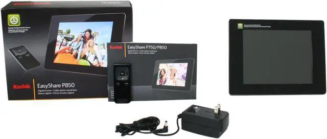 Environmentally Responsible OperationENERGY STAR qualified and utilizing mercury-free panel, the Kodak EASYSHARE P850 provides outstanding power efficiency and lower environmental impact. Programmable timer automatically shuts down power at preferred times, and the activity sensor turns the frame on when you’re nearby and conserves power when you’re not for improved energy-saving.